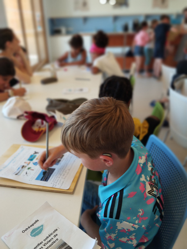 Avec les supports de l'exposition, les élèves apprennent à repérer les différentes espèces animales et végétales dans leur environnement, spécifiquement celles du Golfe du Morbihan.